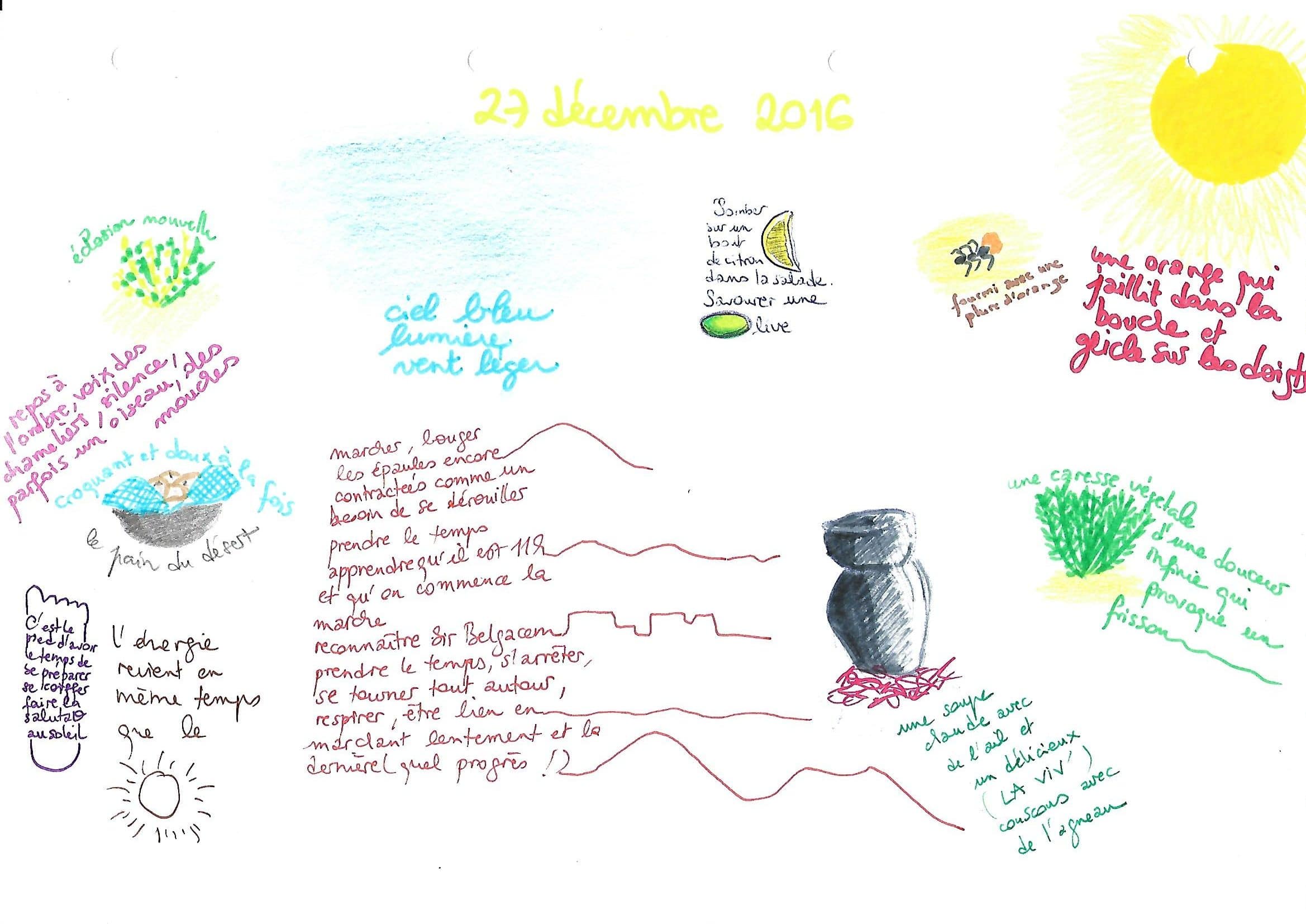 Après une journée de silence, j’ai consigné à la Prévert les sensations et les ressentis de la journée.